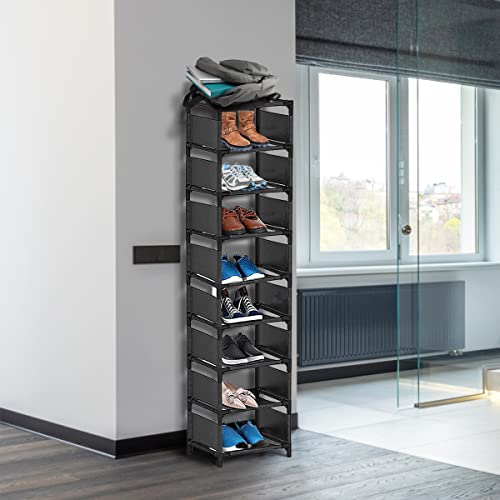 Yagosodee Scarpiera, 10 Livelli di Stoccaggio per Scarpe, Scaffale Modulare in Plastica, Scarpiera in Tubo D'Acciaio Ispessito, Scarpiera da Ingresso, Scarpiera Salvaspazio, Nero.