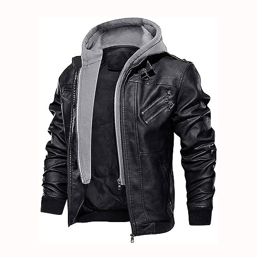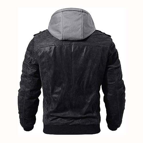Yahbrra Giacca in Pelle con Cappuccio Staccabile da Motociclista Uomo Similpelle Artistica Giubbotto Bomber Vintage Elegante per Il Tempo Libero Autunno Inverno (Color: Schwar, Size: L)
