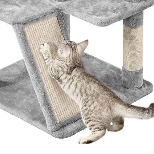 - Versatile: con scaletta, 2 cucce per gatti di diverse dimensioni, più pali avvolti in corda di sisal per arrampicarsi e per la cura degli artigli;