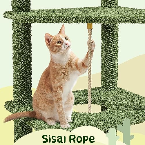 Yaheetech Albero Tiragraffi per Gatti 179 cm Torre a Forma di Cactus in Truciolato e Sisal con Posatoio Condominio Amaca Verde e Marrone