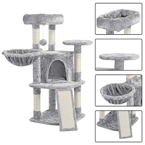 Yaheetech Albero Torre Tiragraffi per Gatti Giocattolo Gioco in Corda Sisal Grigio Chiaro 43 x 43 x 107 cm