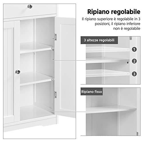 Yaheetech Armadietto da Bagno in MDF con Cassetti e Ripiani Regolabili 81 cm × 30 cm × 81,5 cm Mobiletto Indipendente da Terra Mobile Portaoggetti per Soggiorno/Sala da Pranzo Bianco