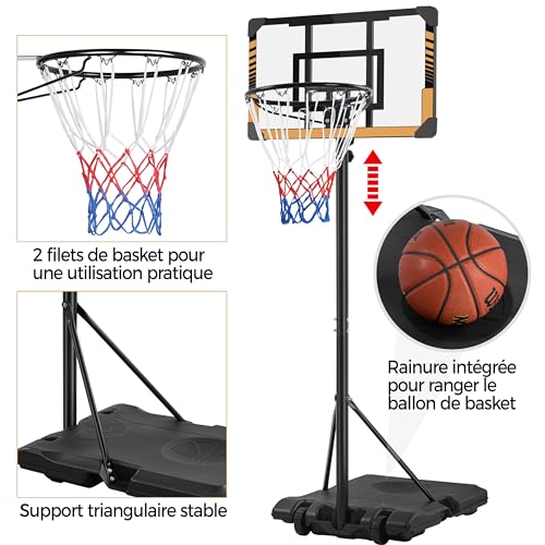 Yaheetech Canestro Basket Esterno Interno Camera Portatile con Colonna Tabellone Canestro Altezza Regolabile 226-256 cm