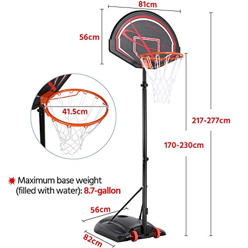Canestro Versatile: Adatto per il basket 3-7. Questo canestro da basket regolabile in altezza può essere impostato fino a 277 cm di altezza per il gioco a bordo campo o abbassato fino a 217cm per i giochi al coperto. L'altezza del cerchio può essere regolata da 170cm a 230cm specialmente per le partite di basket in piscina.