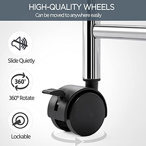 Ruote bloccabili: ci sono 4 ruote lisce a 360° disposte sul fondo di questo carrello portaoggetti, di cui 2 sono bloccabili. Con questo design semplice ma funzionale, è possibile spostare facilmente il carrello in base alle proprie esigenze, inoltre la struttura efficace evita che il pavimento si graffi e che gli spostamenti producano fastidiosi rumori.