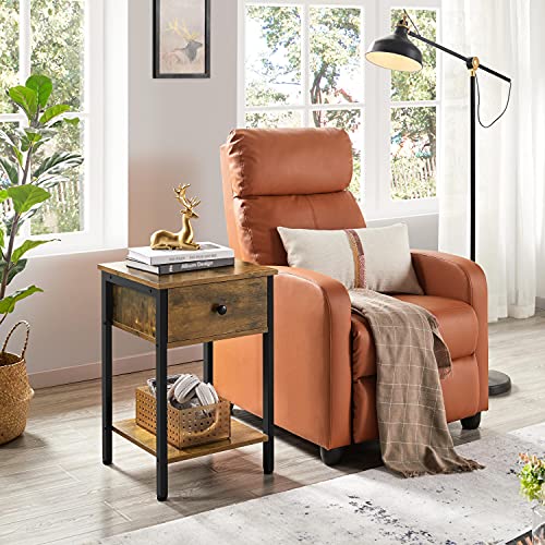 Yaheetech 2 Comodini da Camera da Letto Industriale Tavolino con Cassetto e Ripiano Aperto Mobiletto da Divano Salvaspazio Vintage in Legno e Metallo Soggiorno Marrone Rustico 40 x 40 x 61 cm