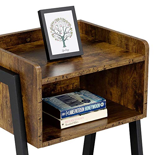 Yaheetech Comodino Camera da Letto Industriale Tavolino Laterale da Divano Tavolino Basso Impilabile Mobile da Divano in Legno e Metallo 46 x 33 x 53 cm