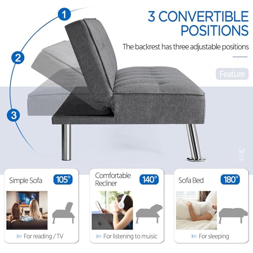 Yaheetech Divano Letto Reclinabile con Seduta Imbottita Convertibile in Letto 105° - 180° Mobile Regolabile da Soggiorno Salotto Stanza Ospiti Arredamento per Riposo Grigio Scuro/Tessuto
