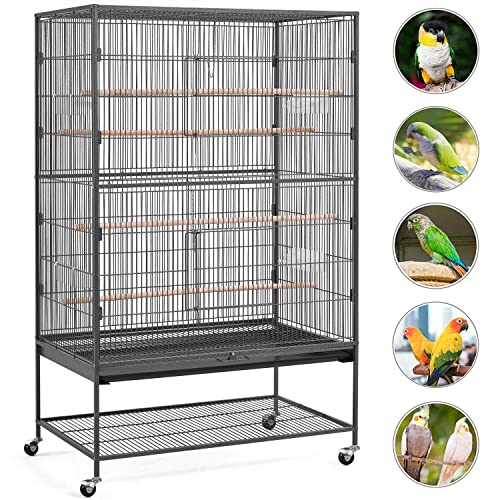 Yaheetech Gabbia Voliera per Pappagalli Uccelli Grandi Altezza 153 cm Inseparabili Calopsite con Piedistallo Ruote in Metallo da Interno e Esterno 93,5 x 56,5 x 153 cm Nera
