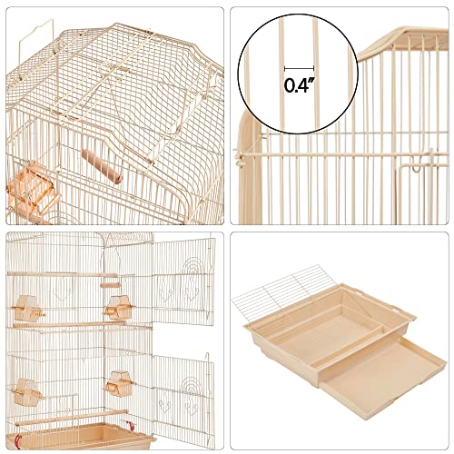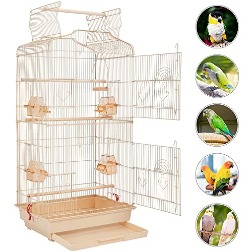 Yaheetech Gabbia Voliera per Uccelli Pappagalli Inseparabili Parrocchetti in Metallo con Tetto Apribile 46 x 36 x 104 cm Mandorla