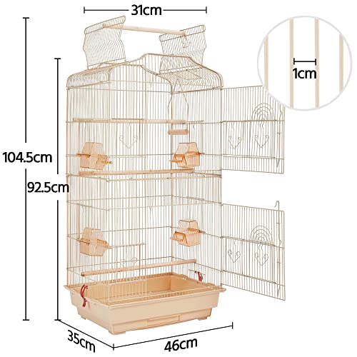 Gabbia spaziosa per uccellini: con una misura di 46 x 35 x 92.5 cm, questa spaziosa gabbia per uccelli può ospitare 2-3 uccelli piccoli/medi. La spaziatura della barra di 1 cm è sicura per gli uccelli. Perfetto per piccoli uccelli come pappagallini, canarini, piccioncini e fringuelli.