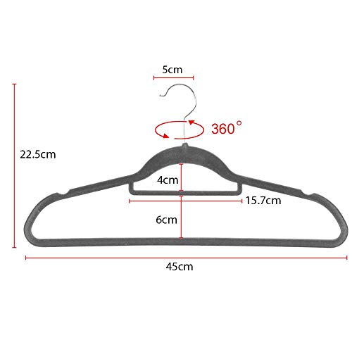 SUPERFICIE ANTISCIVOLO: le grucce in velluto di qualità aumentano l'attrito tra i ganci e gli abiti, evitando che i vestiti scivolino via dalle grucce.