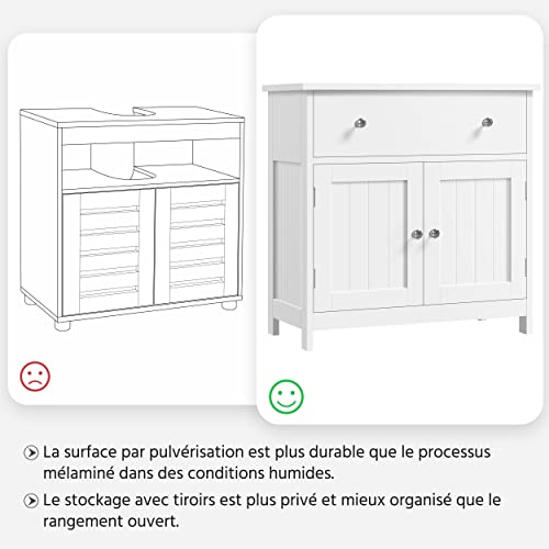 Yaheetech Mobile da Bagno Sottolavabo Mobiletto con Cassetto e Ripiano Portaoggetti Armadietto da Terra per Lavandino Salvaspazio in MDF 60 × 30 × 60 cm Bianco