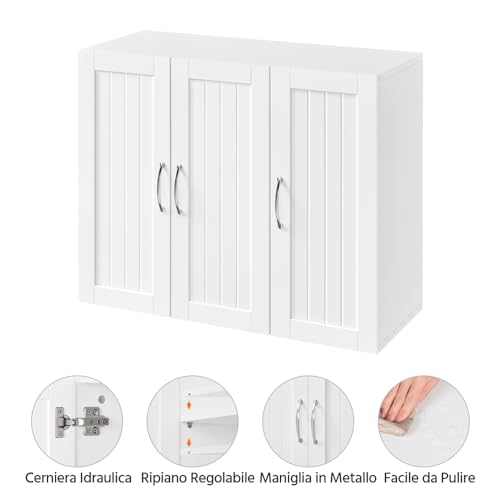 Yaheetech Mobile da Parete Mobiletto da Bagno con 3 Porte Armadietto Moderno a Muro Salvaspazio da Cucina Sogggiorno Portaoggetti Bianco 60 x 31 x 75 cm