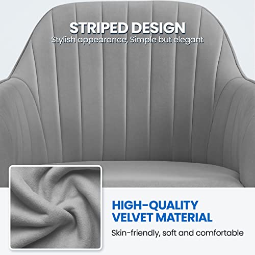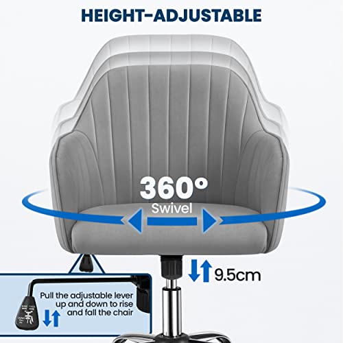 Yaheetech Poltroncina Ufficio Ergonomica Sedia Scrivania in Velluto Imbottita Girevole a Rotelle Reclinabile Altezza Regolabile Portata 136 kg Grigio Chiaro