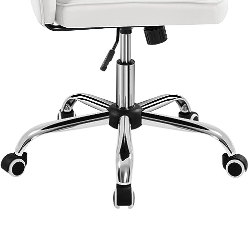 Yaheetech Sedia Ufficio Senza Braccioli Ergonomica in Ecopelle Bianca Imbottita da Scrivania a Rotelle Girevole Altezza Regolabile