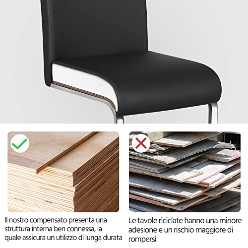 Facile da pulire: queste moderne sedie da pranzo presentano un rivestimento in finta pelle resistente all'acqua, il quale rende la superficie complessivamente più liscia e facile da pulire. Per la manutenzione ordinaria del prodotto, basta semplicemente l'utilizzo di un panno umido. Con queste sedie di qualità, risparmierete tempo e denaro!