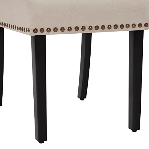 Yaheetech Set 2 Sedie Sala da Pranzo Tessuto Moderne Imbottite Eleganti Gambe in Legno Massello Schienale Alto con Bottoni Portata 140 KG Beige