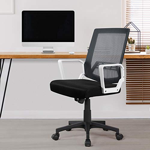 Robusta e Resistente:Venduto in un set di 2 sedie, la sedia da ufficio Yaheetech è realizzata in resistente rete di nylon e schiuma di alta densità per sedile, base metallica a stella robusta, ruote scorrevoli solide e cilindro di gas certificato SGS, in grado di sostenere fino a 125 kg.