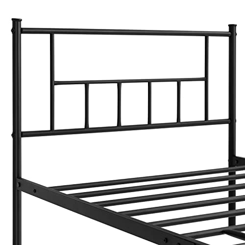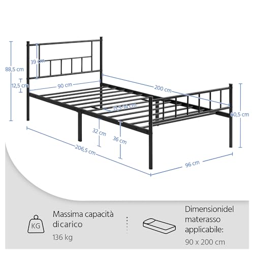 Yaheetech Struttura Letto Singolo in Ferro Battuto Testiera con Tubi Verticali a Doghe in Metallo per Camera Nero 90 x 200 cm