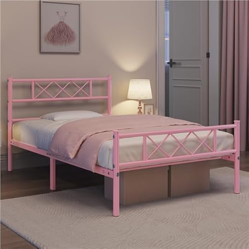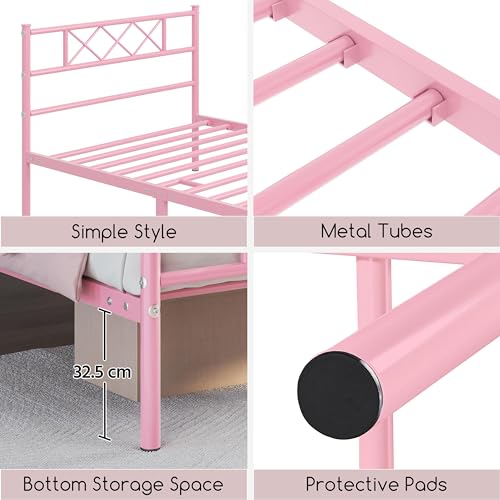 Yaheetech Struttura Letto Singolo in Metallo Ferro con Testiera a Forma di X Telaio con Rete a Doghe per Camera Dormitorio 90 x 190 cm Rosa