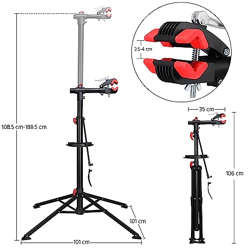 Yaheetech Supporto Regolabile da Montaggio Riparazione Manutenzione Cavalletto Portatile Girevole a 360° per Bici Bicicletta con Vassosio Magnetico Portautensili Pieghevole di Altezza 108-188 cm