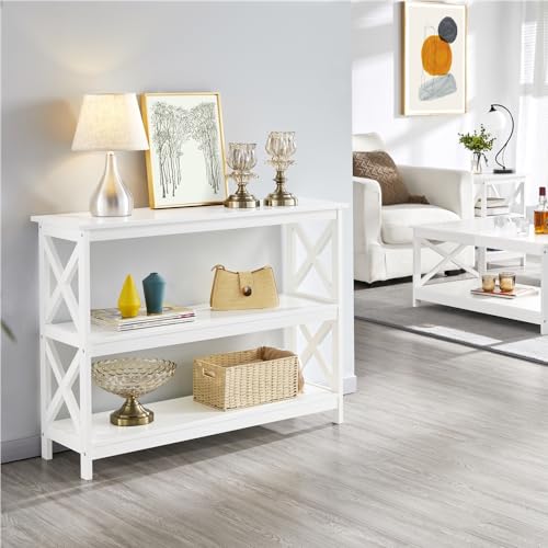 Yaheetech Tavolo Console a 3 Ripiani Tavolino da Ingresso Laterale Tavolo Consolle Salvaspazio per Soggiorno Salotto Corridoio Struttura a Forma X Mobiletto da Entrata 106 x 35 x 80 cm