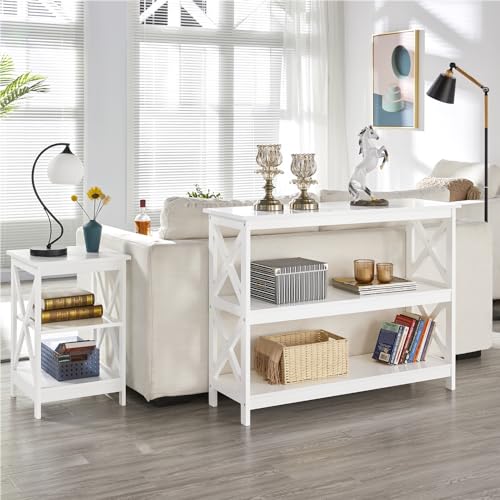 Alta Qualità: Questa consolle da ingresso è realizzata in legno di pino e MDF di alta qualità, robusta e durevole per un uso a lungo termine. La superficie ha un rivestimento liscio a prova di sporco, facile da pulire e mantenere. La capacità di carico massima del ripiano superiore è di 25 kg e altro ripiano di 12 kg. Le strutture a forma X su entrambi i lati garantiscono la gran stabilità.