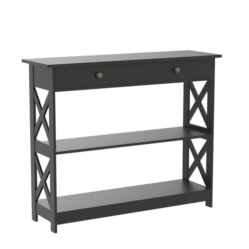 Yaheetech Tavolo Consolle da Ingresso Tavolino con Cassetto Grande Mobiletto da Soggiorno Tavolino Corridoio Nero 100 x 30 x 80 cm