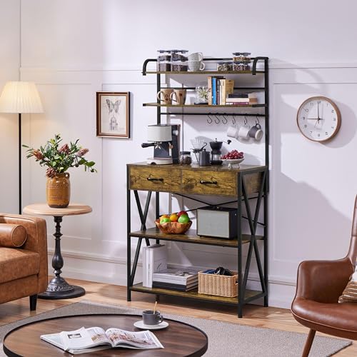 Yaheeteche Scaffale Cucina Microonde con Ripiani Cassetti Ganci Portaoggetti in Legno e Metallo Alto Organizer Cucina 90 cm × 40 cm × 170 cm