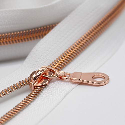 YaHoGa Metallici Nylon Cerniere Lampo 9 m Rolle Chiusure Lampo a Metro, 30 mm Largo, inkluso 25 Nonlock-Cursore della Cerniera (Rosa Dorati Bianco)