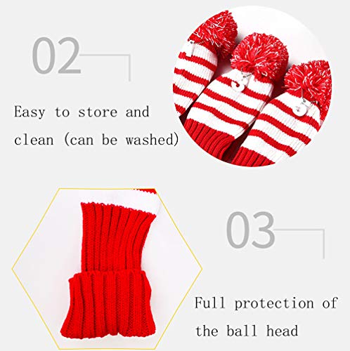 Yajun Set Copri Testa da Golf Driver Golf Hybrid Club Copricapo in Legno A Maglia Headcover 3 Pezzi per Driver 1 3 5 per Uomo Donna Bambini,Red