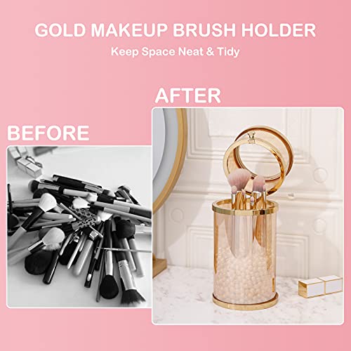 Grande capacità: le dimensioni totali (lunghezza x larghezza x altezza): 10,3 x 10,3 x 20,8 cm. Il nuovissimo organizer per pennelli da trucco in oro è progettato con grande capacità e poco ingombrante ed è perfetto per riporre tutti i tipi di pennelli da trucco, matite per sopracciglia, eyeliner e rossetti.