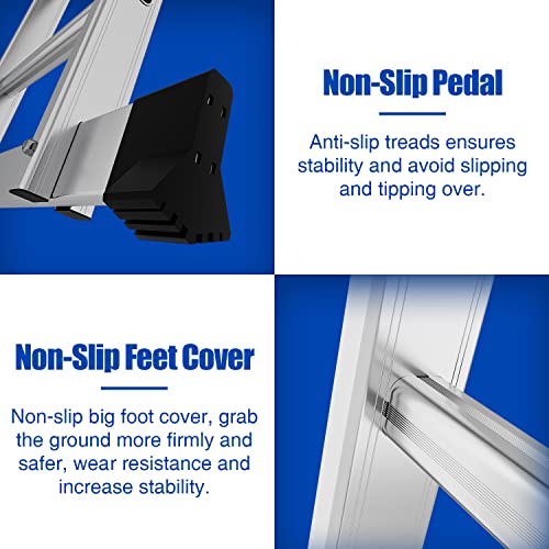 √ Versatilità: i regolatori a cerniera bloccabili possono convertire rapidamente la scala in diverse configurazioni come scala inclinata, scala a telaio A, scala telescopica, scala scala, cavalletti, piattaforma di lavoro, ecc. Per soddisfare le diverse esigenze.
