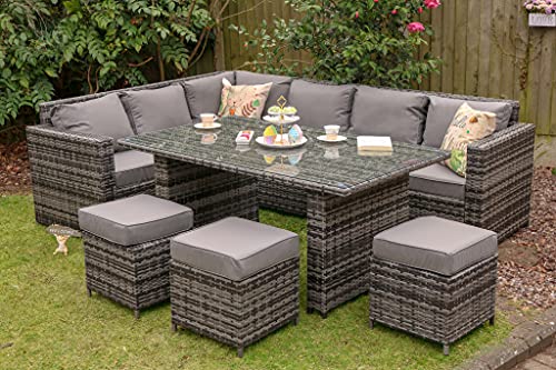 YAKOE 50108 Conservatory Classical Gamma 9 Posti mobili da Giardino in Rattan Set da Pranzo ad Angolo, Colore: Grigio