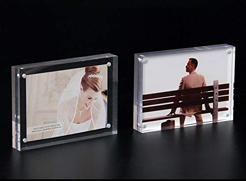 Magnetica blocco acrilico foto cornici, doppio display laterale, perfetto per la visualizzazione su una scrivania, tavolo o scaffale.