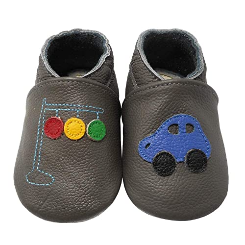 YALION - Scarpe primi passi in pelle morbida per bambini, (Semaforo grigio scuro.), 20/21 EU