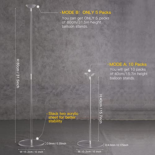 YALLOVE Kit di supporto per palloncini da tavolo in acrilico trasparente, altezza regolabile, confezione da 10 supporti per palloncini con base per centrotavola da tavolo, decorazione per feste