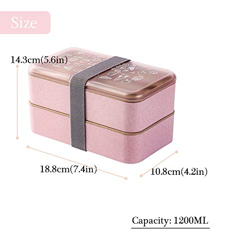 Yalucky Scatola Bento Scatola Pasto 2 Livelli con Posate Riutilizzabili Lunch Box Stile Giapponese per Microonde Congelatore Lavastoviglie Bento Box per Bambini Adulti (Rosa)