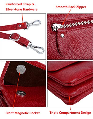 YALUXE Borsa a tracolla Donna in vera pelle Borsa a polso per smartphone Portafoglio a con slot per schede di blocco RFID Rosso