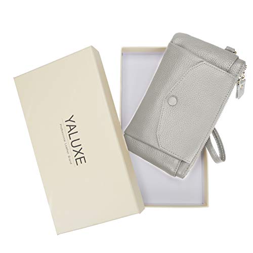 YALUXE Borsa a tracolla Donna in vera pelle Borsa a polso per smartphone Portafoglio a con slot per schede stile vintage Grigio