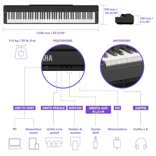 Articolo consegnato: 1 x Pianoforte Digitale Yamaha P-125B, incl;