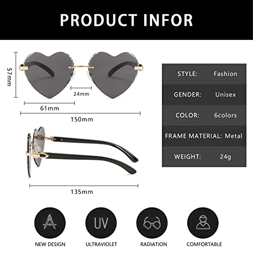 【Cornice a Cuore】 Il design a forma di cuore senza montatura alla moda aumenta il senso della moda degli occhiali da sole, ti rende più attivo tra la folla, adatto per abbinarsi a vestiti o forme diverse.
