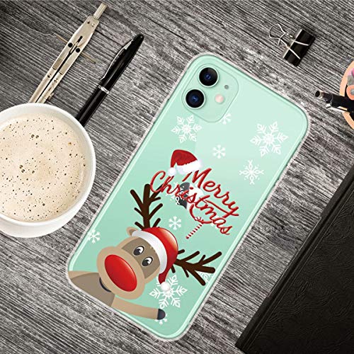YaMiDe Custodia per iPhone 11 Pro, 【con una protezione per lo schermo】, progettata per Natale, Custodia in TPU trasparente ultra sottile , Natalizio Custodie, Snow Elk