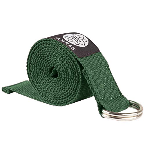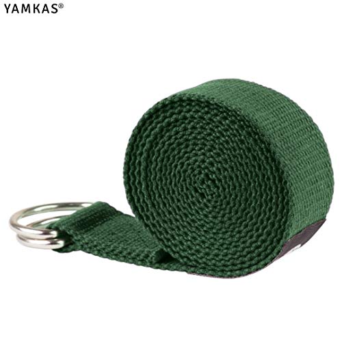 Yamkas Cinghia Yoga | 1.8M - 3M | Cinghie Yoga 100% Cotone | Cintura Yoga con Chiusura in Metallo | Yoga Stretching Belt Strap | Verde