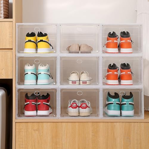 YANAYANA Scarpiera impilabile, 36 x 28 x 21 cm, per scarpe da ginnastica, in PP e acrilico, a prova di polvere e umidità, resistente, chiusura magnetica (trasparente)
