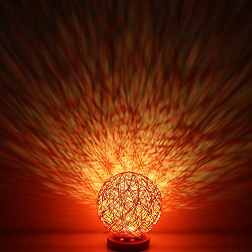 YanFeng Lampada a sfera sferica, lampada da tavolo Lampada piccola Lampada da tavolo a sfera in rattan Alimentata tramite USB con paralume lavorato a mano per camera da letto, compleanno, regalo
