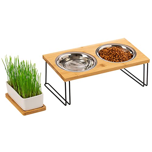Yangbaga Ciotola per Gatti in Acciaio Inossidabile e Ceramica con Supporto, Set di Ciotole per Gatti con Supporto, Set di Ciotole per Gatti con Stazione di Alimentazione per Erba per Gatti