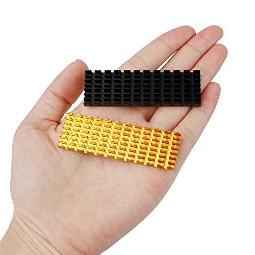 YANGFEI 4 PCS Dissipatore di Calore in Lega di Alluminio 70 x 22 x 6mm per PCIE M.2 SSD Alette di Raffreddamento per Computer Desktop,con Cuscinetto Termico ed Elastico in Silicone (Nero ed Oro)