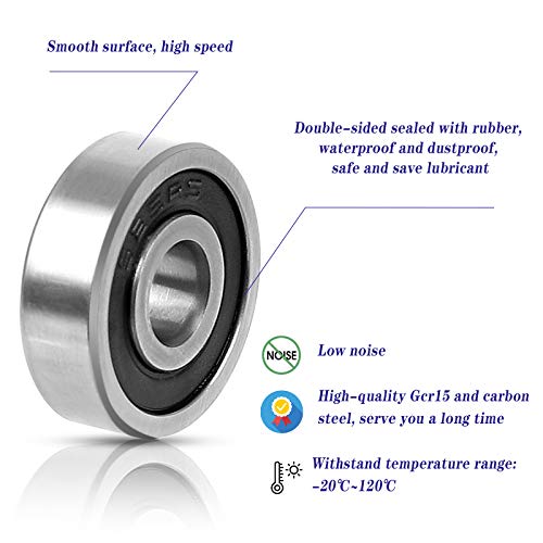 ◎Design a doppia tenuta:entrambi i lati dei cuscinetti a sfera 5mm sono sigillati con gomma di alta qualità.Previene la contaminazione e l'ingresso di liquidi e consente di risparmiare lubrificante.